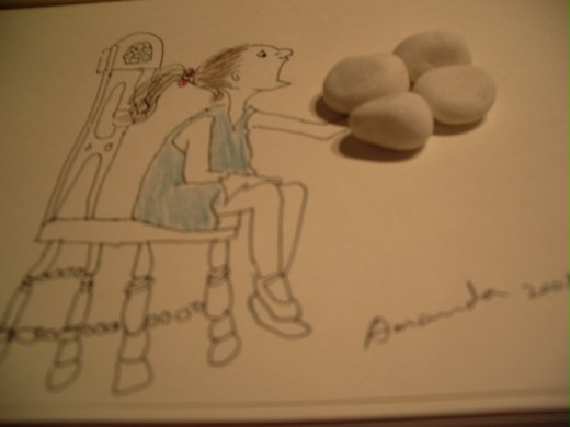 以前學畫圖時, 公司美編部的同事告訴我, 畫手是很難的, 但我一直是抱持著隨性, 所以現在也常手畫的不好, 而讓一張圖有了缺憾, 還好, 反正是好玩, 也不必太在意, 這張圖也是因為手畫的不好, 突然想到我有小石子, 把缺憾的地方遮了起來, 也是很有創意是吧 !