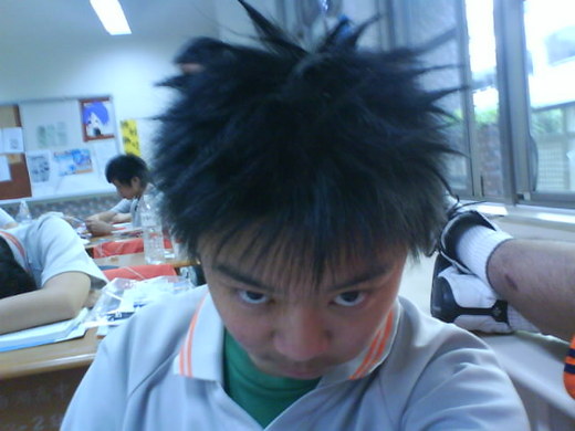 不過他那頭的pose,很像周星馳電影裡的樣子,很好笑ㄟ,真口愛,遺傳媽媽的吧?