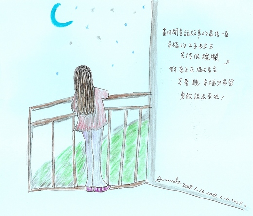 童話故事裡好像真的總是會有壞人出現, 不過最後也一定是完美的結局, 看過一段話 " 翻開童話故事的最後一頁, 幸福美滿不住在裡面 . " 也許現實的生活不能像童話中最經典的 ending 從此他們過著幸福美滿的生活, 但每個人都需要受鼓勵及充滿希望的, 也許因為這樣, 我特別偏愛 < 幾米的繪本 >, 閱讀他的繪本讓人感到幸福, 他的畫乾淨而抒情, 總是充滿引人入勝的魅力, 不必太多言語, 卻彷彿心可領會他想表達的善良純淨, 看他的畫有天馬行空自由自在的快樂, 而那一點點的憂鬱, 是心可領神意會的意域.