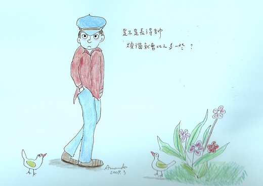 不過看來留言的好像女孩居多, 我問了他, 是跟誰去圖書館的 ? 他笑而不語, 我張大眼看他, 他說有女生啦 ! 我又問, 一個嗎 ? 他拒絕回答了, 我也算了......反正跟你說話你不理, 偶就.......去你的 blog 當個永恆的路人甲吧 !
