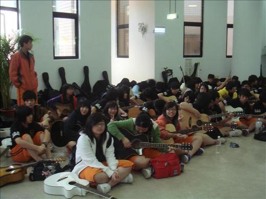我想每個人都想 < 年輕不要留白 > 讓他自己決定選擇他想過的學生生活, 比刻意壓抑限制他好些, 還好還好....他很認真的玩了一學期, 可以肯定的是他已無悔的喝了一杯迷魂湯, 半糖去冰友情口味的........現在的他至少在吉他夢這段是< 沒有留白 > 了 !!