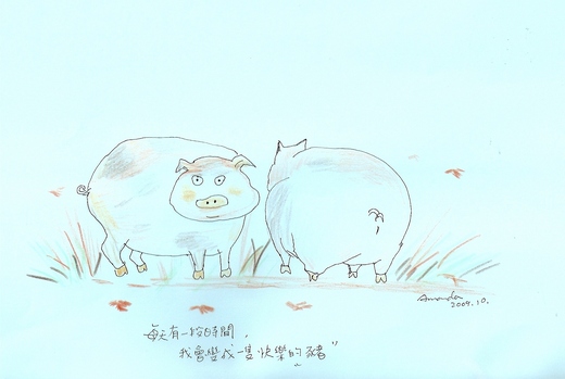 我常在心裡悄悄的許願 : 希望我也能變成一隻快樂的豬.