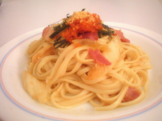 放上cheese 味到更棒喔 (內人不喜歡 -__-) 魚子培根泡菜義大利麵(嗯嗯 如果泡菜汁多一點會更好)!!!