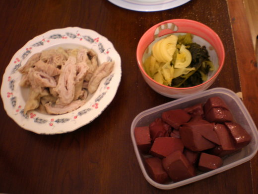 第二天從中國城買回來豬血. 興高采烈的準備時, 突然想到, 冰箱還有準備好的大腸, 嗯嗯 就一起做吧. (噓! 我知道看倌要說啥, 先讓我說完.)