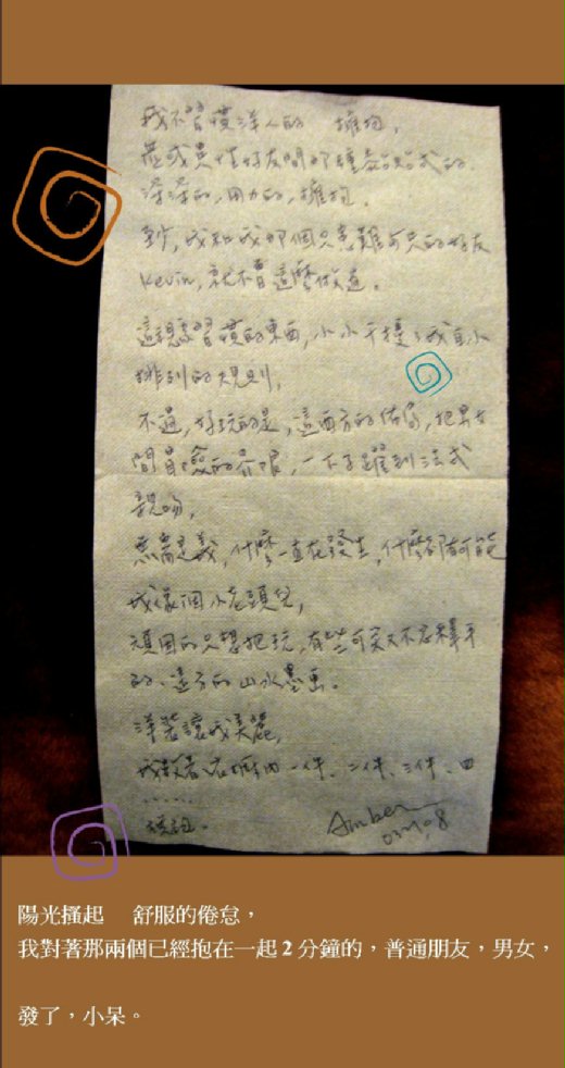 你的筆跡真好看! - 8樓. Dexin Lee2008/04/05 22:51喜歡抱抱~
