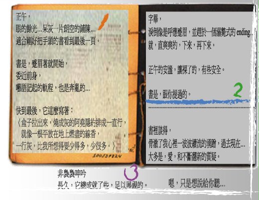 隻字片語中 何處有妳心靈的足跡 掀開的扉頁 卻是沒有結局的 ending
