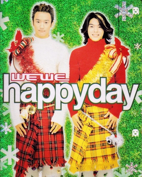 發編時,我跟製作人張培聖商量可否加一段聖誕音樂做尾奏,培聖毫無違和感地也在前奏巧用了平安夜的旋律,於是,我第一名的聖誕歌出現了!那就是2000年聖誕節出道的WEWE,他們的第一首單曲《Happy Day》,我們還讓兩個男生穿裙子扮成聖誕樹,做了一張限量的聖誕單曲卡片。