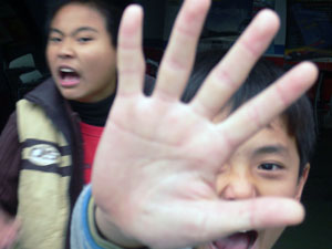 2和3現在讀小五和小四了,想想以前:A??我好像小二就跟別人打架了,即使打贏了回到家還是被老爸電的金閃閃,罰拿椅子半蹲還不准吃飯‧‧‧每次都是丫罵來救我,呵呵呵。