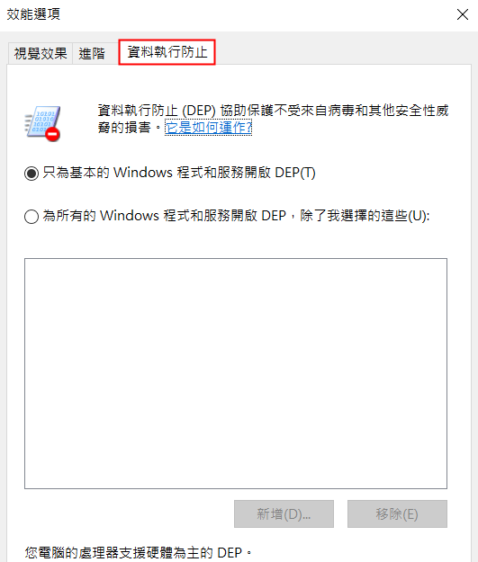 請依下面步驟設定你的電腦,即可關閉DEP(資料執行保護),就可以正常使用下載及附件開啟功能。
