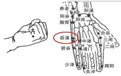後溪穴是小腸經上的一個穴,位於小指外側(尺側),即第五掌指關節處。把手握拳,掌指關節後橫紋的盡頭,也就是在第五掌指關節後的手掌橫紋頭處。這個穴是奇經八脈的交會穴,通督脈,能瀉心火、壯陽氣,調頸椎,利眼目,正脊柱。臨床上,它可以調整長期伏案或在電腦前學習和工作對身體帶來的一切不利影響,只要堅持,百用百靈。