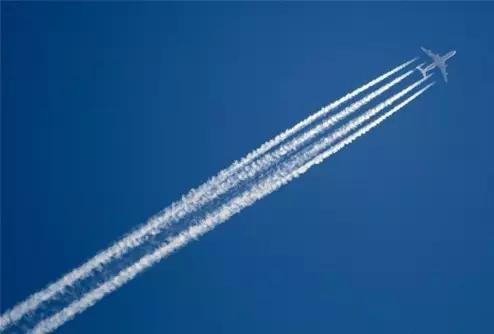 而飛機高空飛行的時候,那裡的溫度非常低,通常在零下40℃,飛機尾部出來的水蒸氣與冷空氣相遇,凝結成水滴甚至冰晶,從而產生了白色的凝結尾跡。