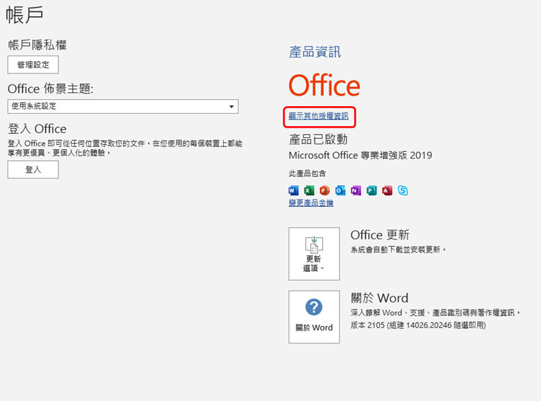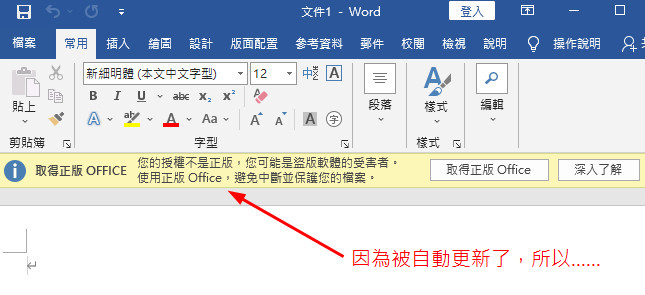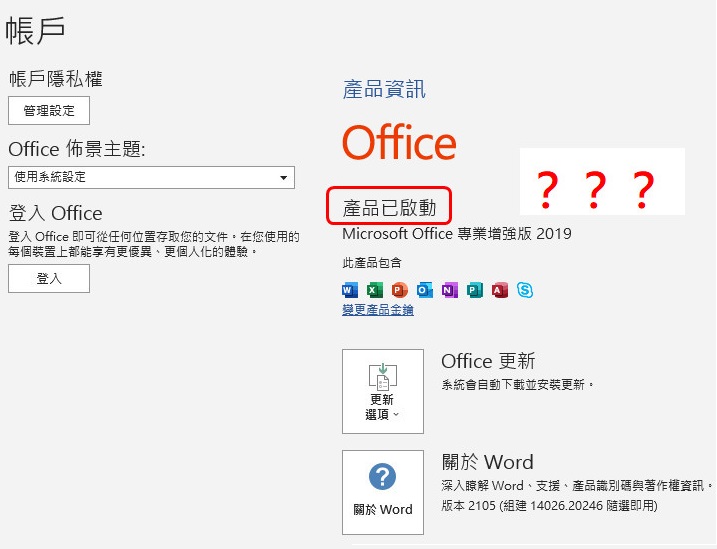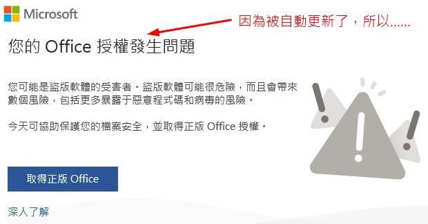 Office 2019<<更新後>>啟動狀態下要求取得正版?