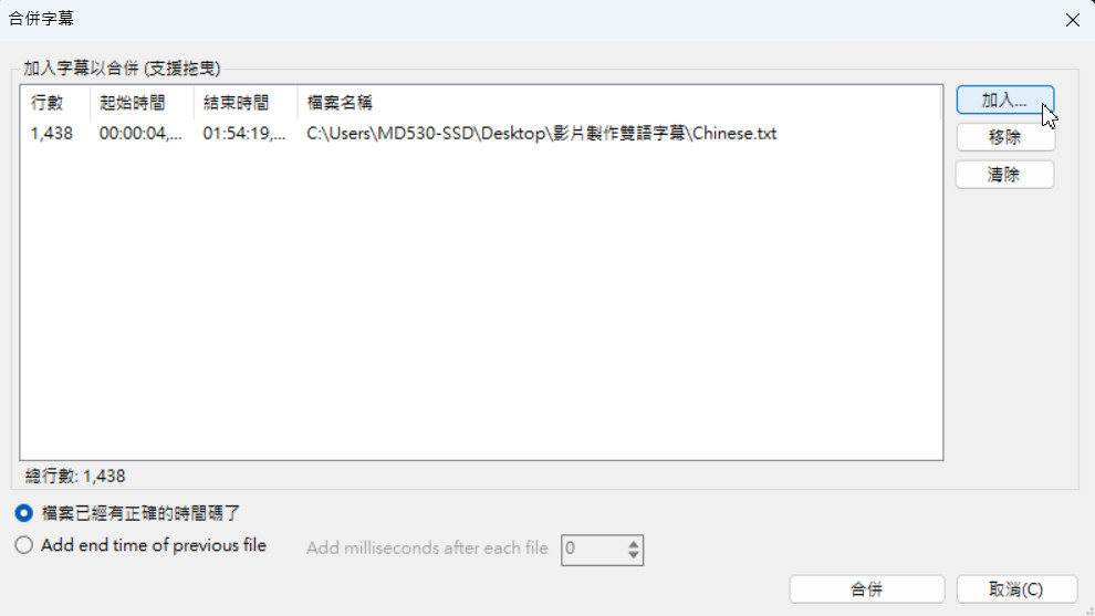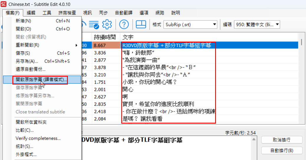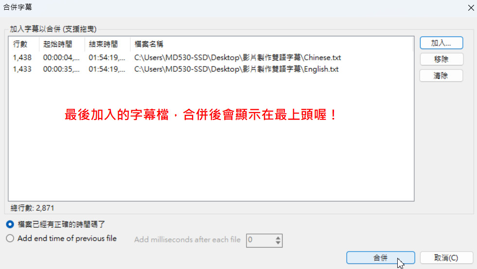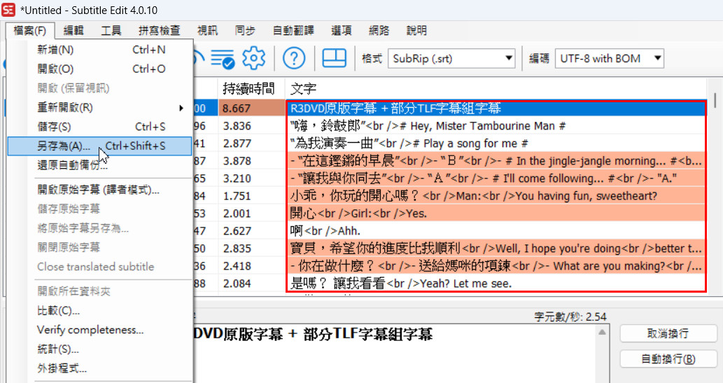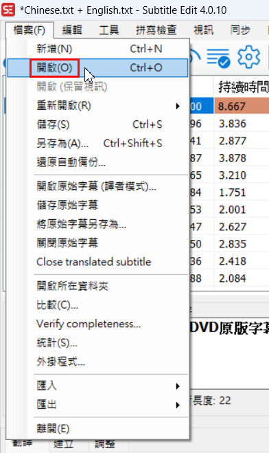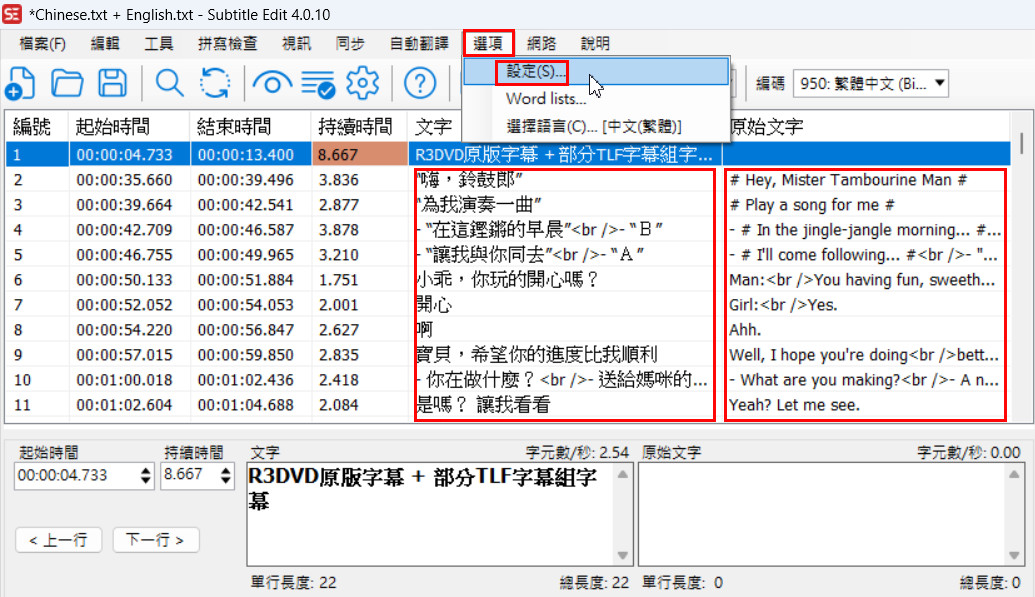 Subtitle Edit製作雙語字幕