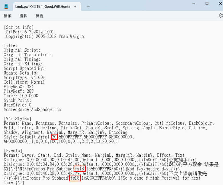 Aegisub-字幕檔時間軸修改與調整字型大小