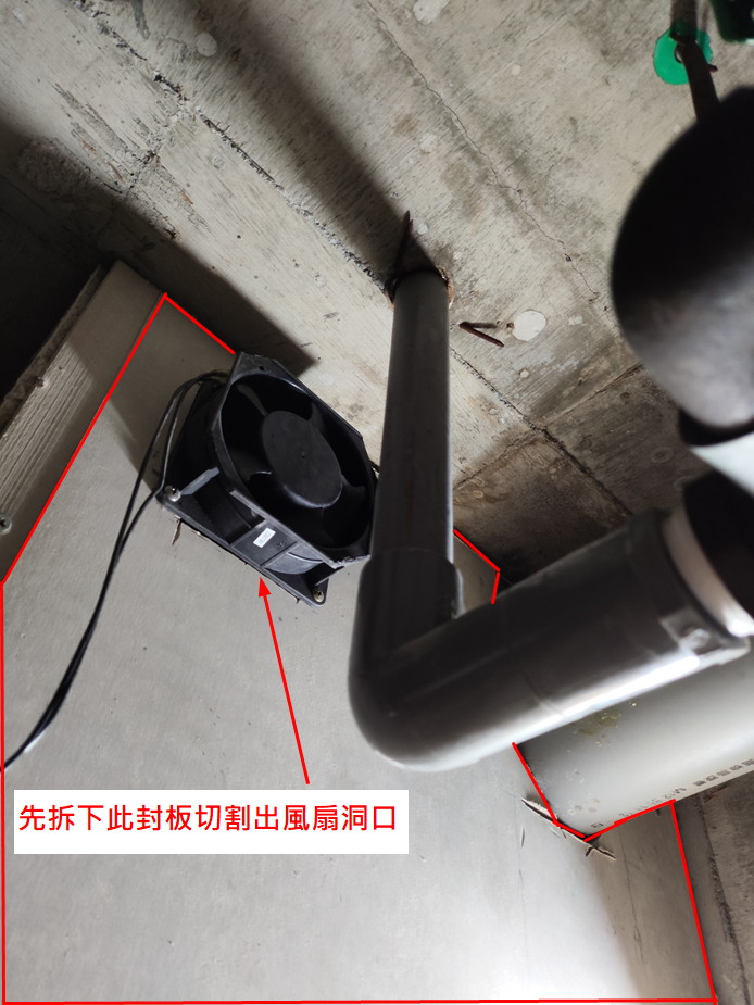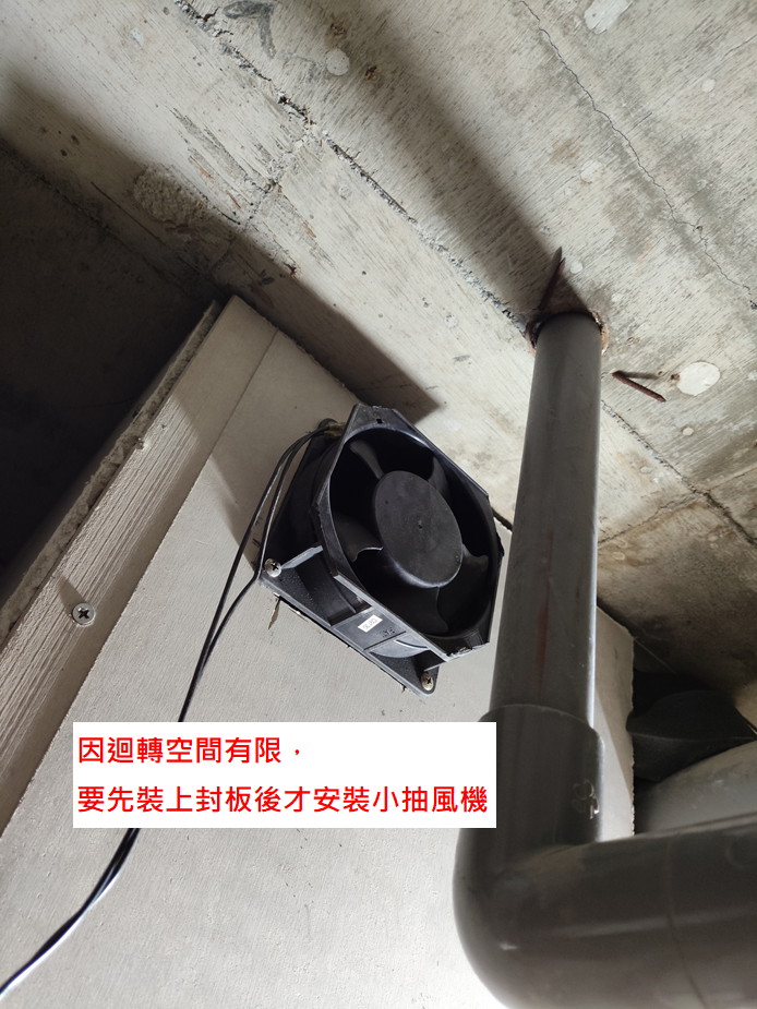 今天終於心血來潮,突然動手挖洞加裝共同管道通風孔小抽風扇。