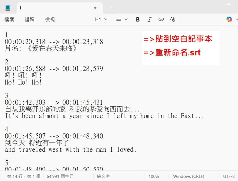 srt字幕檔使用記事本開出來亂碼?