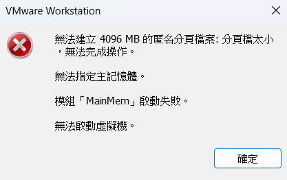 原因分析:模組 MainMem 是 VMware 中負責管理虛擬機器記憶體的核心元件之一。當其啟動失敗時,通常是因為宿主機的實體記憶體不足或配置不當引起的。以下是具體解決方案: