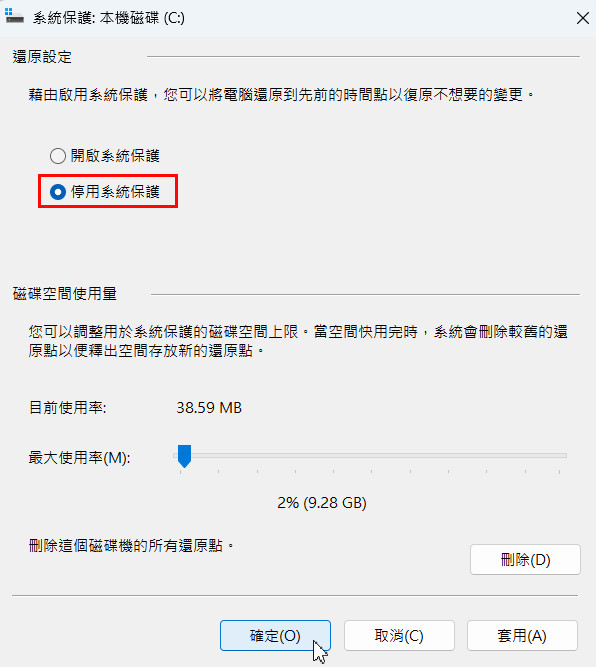 系統還原保護設定如何關閉?