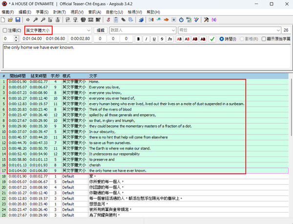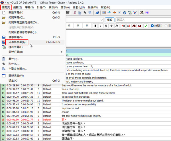 - 1樓. amisay1682026/01/17 22:28Subtitle Edit製作雙語字幕