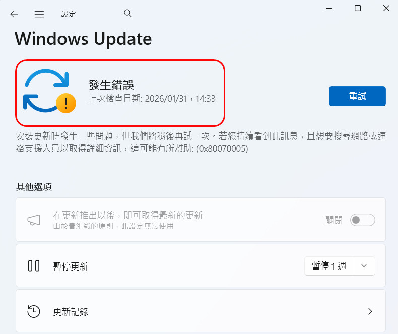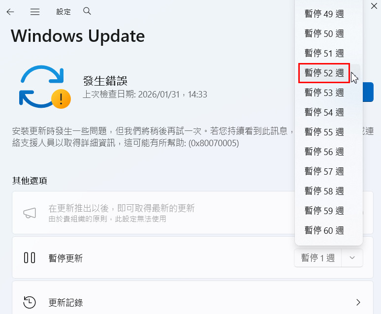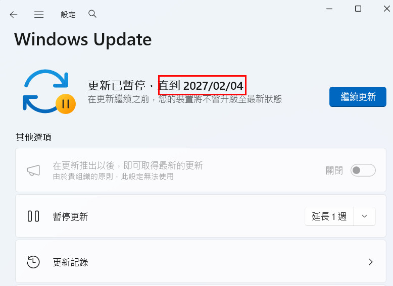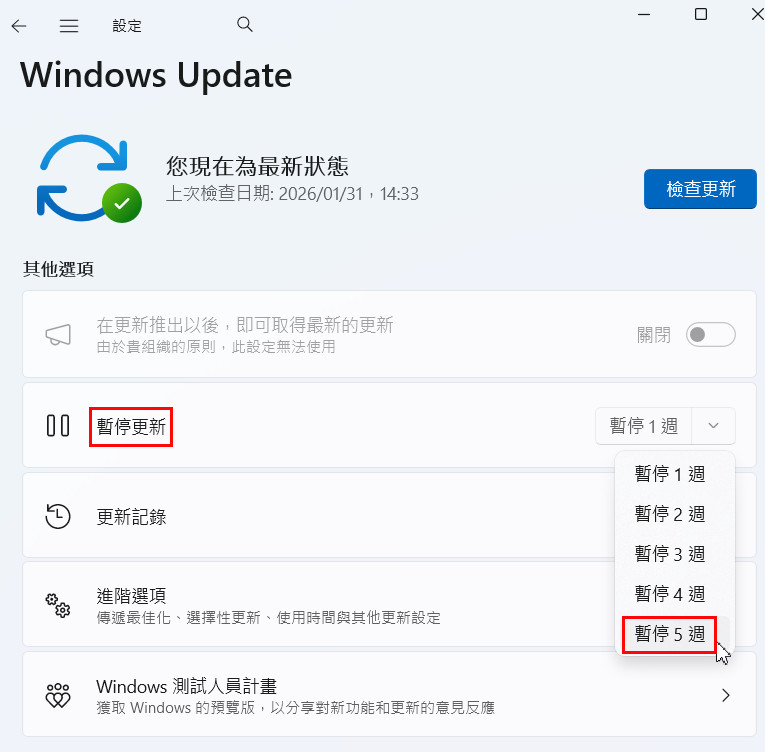 方法二:原五週暫停更新期限修改延長為自訂2年期限