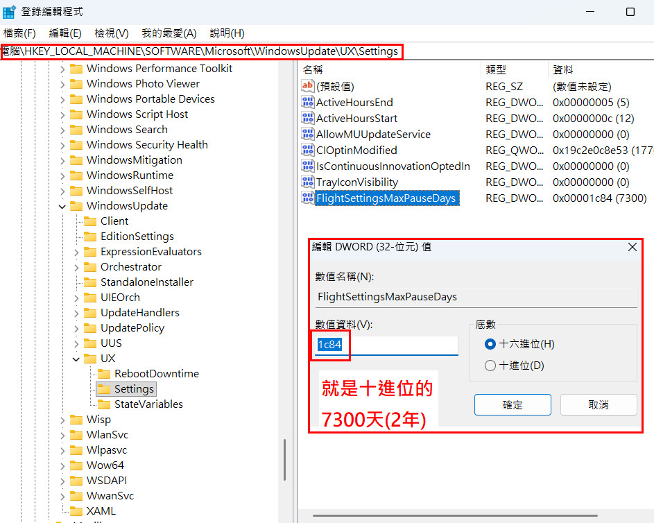 電腦\HKEY_LOCAL_MACHINE\SOFTWARE\Microsoft\WindowsUpdate\UX\Settings