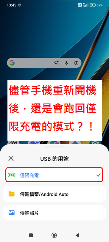 根據上述步驟,最後還是會被強制設定為:模式「僅充電」