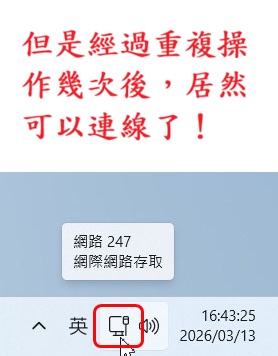 重新開機還是一樣,重複設定幾次後,莫名其妙地可以連線了?!