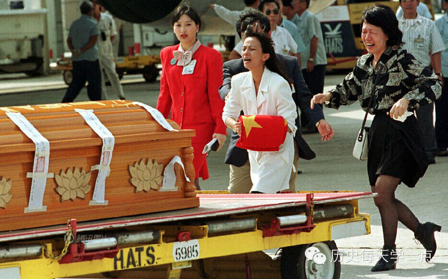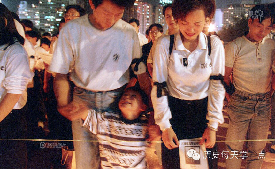 1996年9月29日在香港,50000不同意識形態的人聚集在維多利亞廣場,沉痛悼念在保釣運動中犧牲的陳毓祥。在集會的中央,是陳的寡妻和他8歲和10歲的兩個女兒。