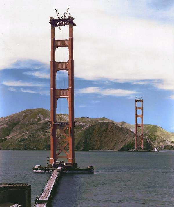 美國舊金山標志性建築——金門大橋建造到一半的時候