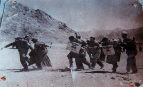 在叛亂頭目赤列曲珍(女),讓窮甘登羅布的策動指揮下,十餘個縣的“藏獨”分子在尼木縣發動了反革命武裝叛亂。公開提出“西藏獨立”,“達賴喇嘛萬歲”的口號,煽動將穿藍的(地方幹部)和穿黃的(解放軍)趕出西藏去。圖為反革命叛亂分子被押往刑場。