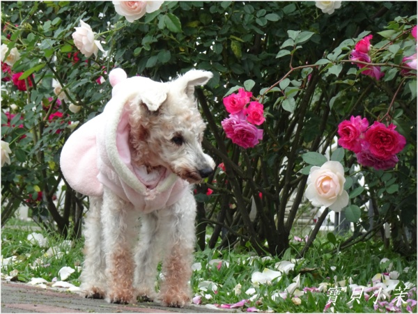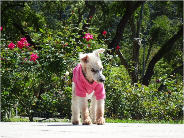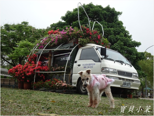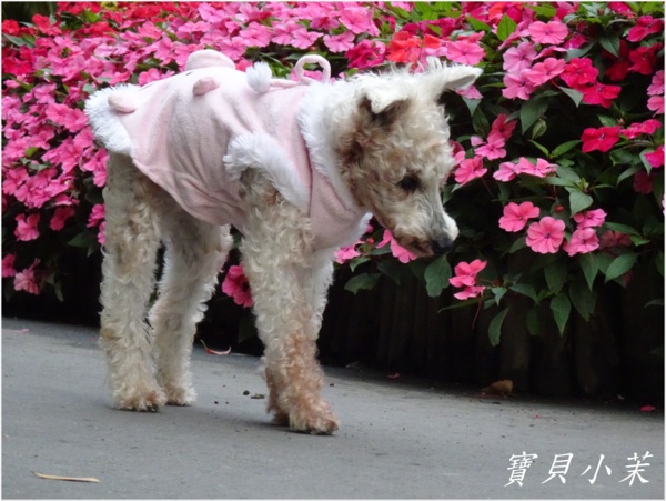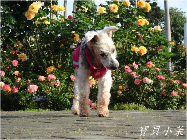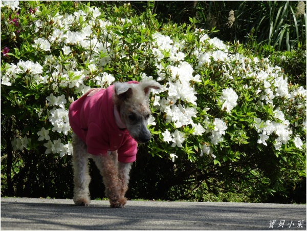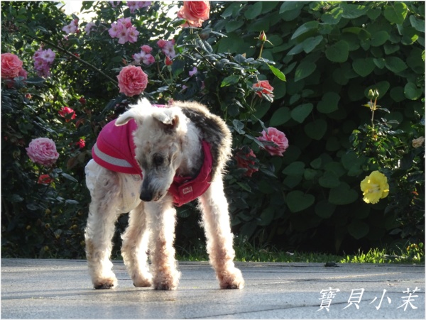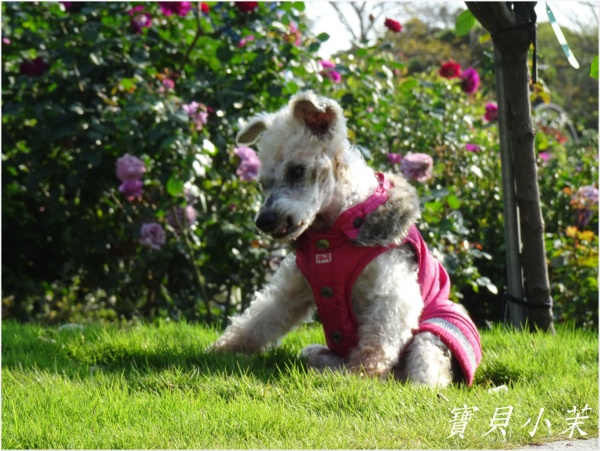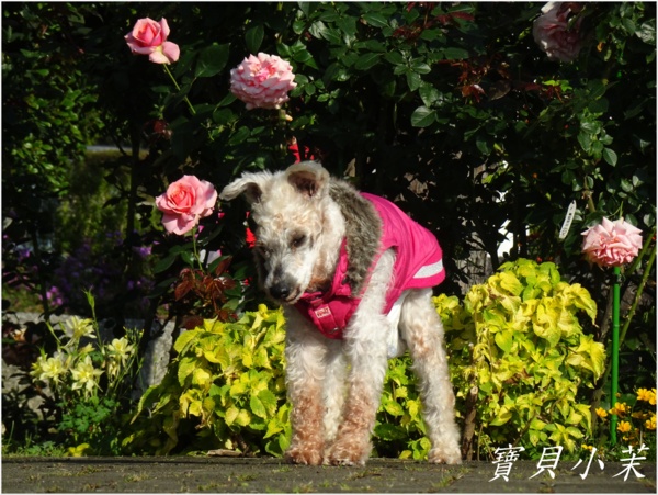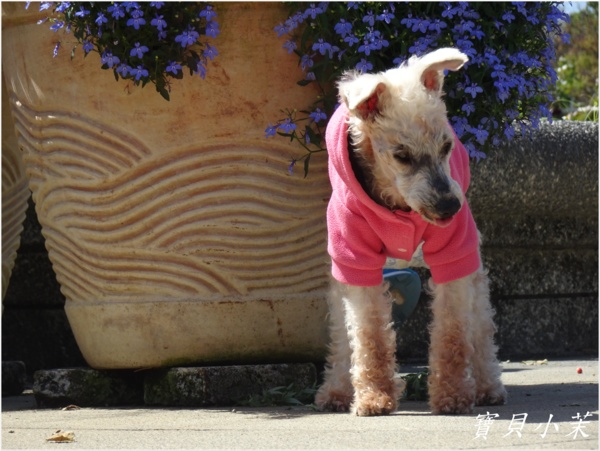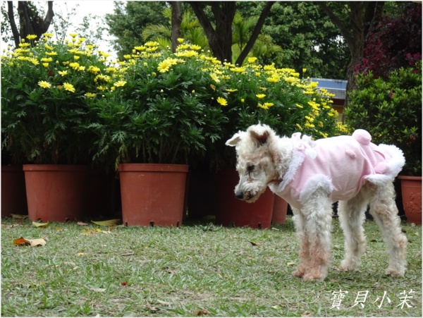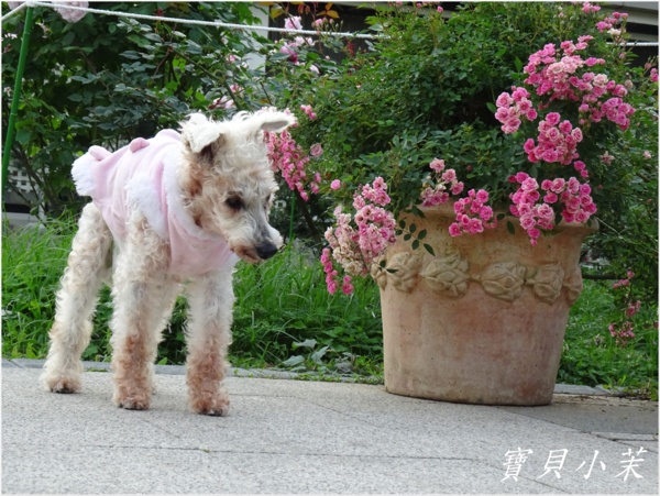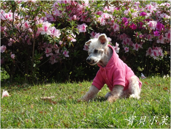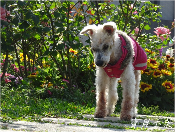 從小就是拍花的模特兒,老了不能站得美美的給拍,還是要帶牠出來曬曬太陽。