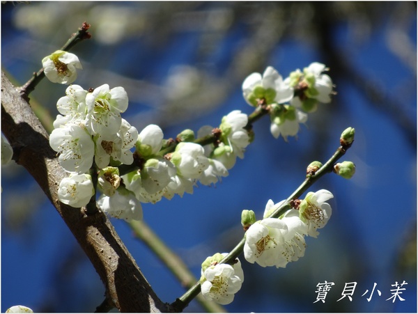 白梅:包括重瓣的新冬至梅 單瓣的青軸以及萼綠花白小枝青綠的獨特綠萼梅