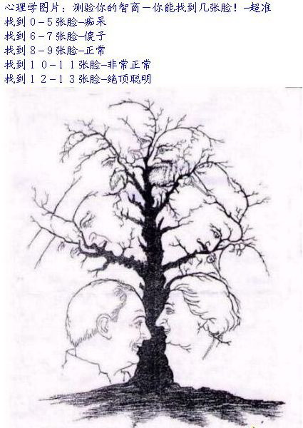 看到這張圖,想起以前小時候常玩,可是那時候的我沒找到幾張,現在,我又看到這張圖,找到十個面孔,真是有趣!