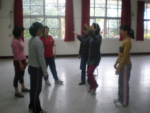 在我們大家剛帶好暖身時,之前在門口遇到的聖誕老公公跟主任又出現在我們眼前了,為了糖果,當下馬上使用了我們青春乀肉體讓聖誕老公公及大姐姐們知道,他們糖果分的很不平均,所以我們踏出了第一步「一句話加上定格」,我們用一個動作一句話讓老公公們知道有人一顆糖都沒有拿到,有人只有一顆糖果(這不是貪心的問題,呵),有人有一大把的糖果,有人要謝謝老公公的糖果,呵,老公公們看到我們第一次的即興,很大方的又送了大把的糖果給我們哦,這當下的即興是那時最好呈現的事件了吧,沒想到各位仙女們居然能馬上呈現出來,真的是……聖誕快樂了。
