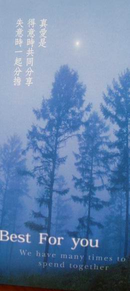 我很愛妳,我用我的方式愛妳──我沒有用浪漫典雅的香水信紙跟信封來證明,但是我用各色沒有框線的純白信紙,在上面天馬行空舞動我對妳的思念予妳知曉──親愛的,沒有限制的一顆心在說著「我愛妳」!