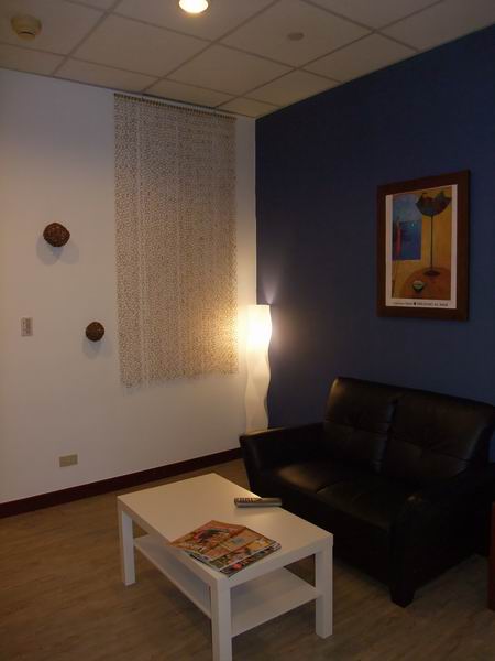 ↑房間內雖沒有真正有生命力的綠色植物,但民宿主人仍然用心的擺上栩栩如生的綠色盆栽與藤球,對照屋外的明亮與炎熱,相形之下...屋子內的涼意與安靜是現代人最需要放鬆的好地方。