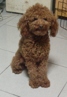 牠叫”coffee” ‚中文”張咖啡” ‚夠台吧‚名字是原本主人取的‚中文是我故意加上去的‚牠是隻斯文靦腆的紅貴賓‚其實仔細看真的是有點小可愛‚軟軟捲捲的毛還滿乾淨討喜的‚我很喜歡看牠的眼睛‚單純天真卻又有點憂鬱及膽怯‚不由的惹人憐愛。