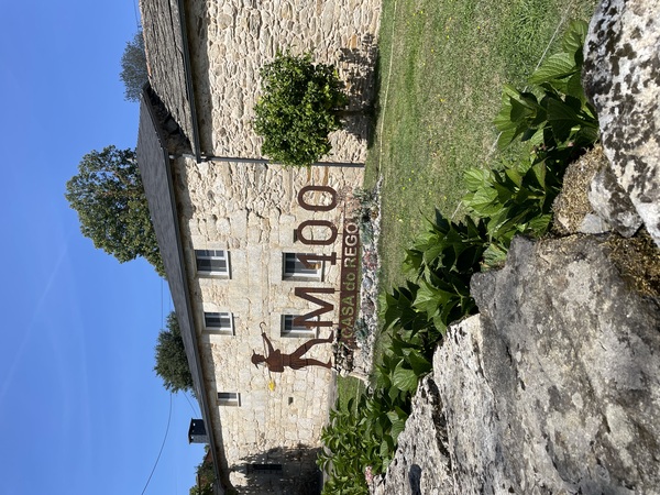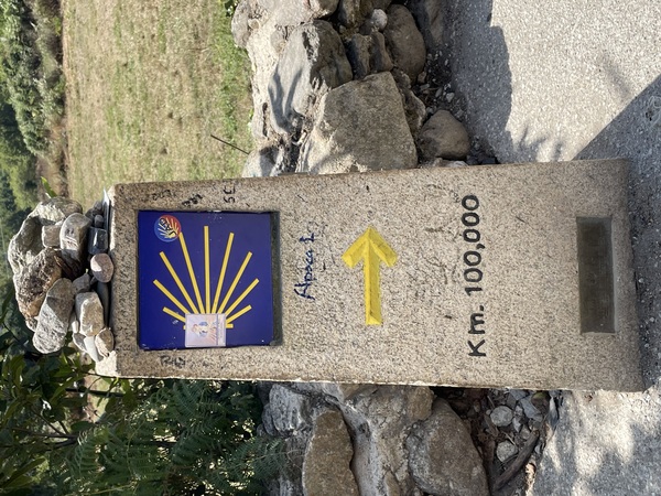 12:50終於走了10公里,狀況依舊不錯,希望繼續保持。14:40走到100公里的地方嘍,大家都開心地拍照,因為馬上就要破百了嘛!這時我們決定繼續走,就走到Portomarín吧!