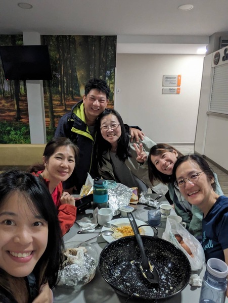 放好行李後到市區裡逛逛,順便找找東西吃,老公眼厲,一眼就看到昨天晚上認識的4個台灣女人,她們是3姊妹和朋友,我們互留了fb和賴,李芃芃也把昨晚的合照傳給我。