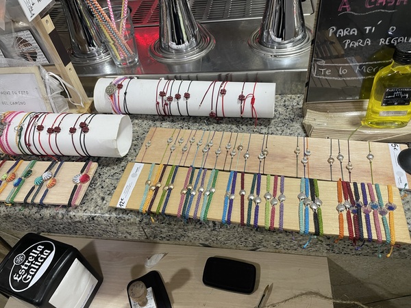 在交誼廳簡單地啃了個麵包配白開水後,06:47出發嘍。08:22在一個店外休息一下,因為左腳腳底板長出水泡了,但其實昨天就覺得怪怪的,只是那時還看不出來。