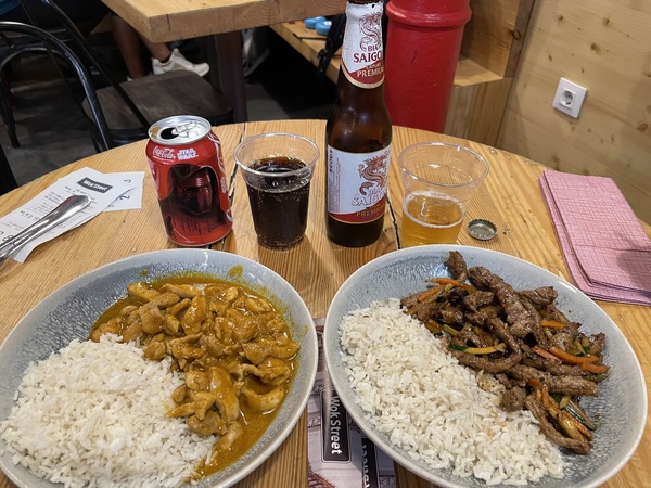 13:24走進一家中式料理店,每道料理都8歐上下,吃!再不吃沒得吃了。我點的雞肉飯好吃,肉嫩,整體鹹度適中。但老公點的牛肉飯就很慘了,肉太老了,而且打死賣鹽的。