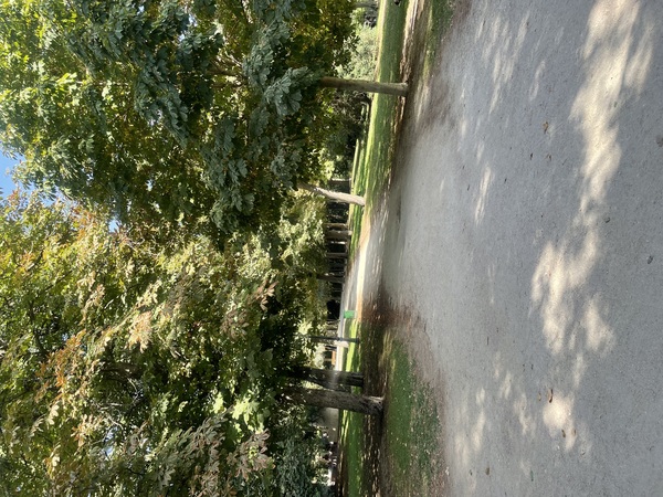 16:10終於走到了麗池公園,進大門前看到一張椅子,33度,坐下來吃蝦餅、喝水,休息一下,等等再去公園裡逛逛。