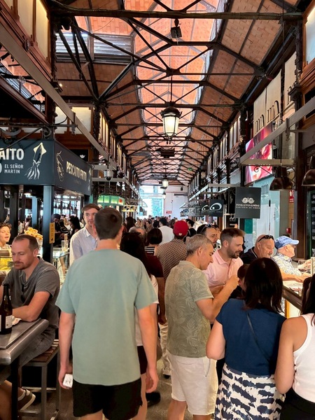 今天化身為觀光客,而不是朝聖者,按著AI的建議行程走,第一站是太陽門廣場,再步行4分鐘會到馬約爾廣場。在去聖米蓋爾市場的路上看到了一家星巴克,11:10喝杯星巴克吧,這是我們在西班牙第一次看到星巴克,也是第一次喝到冰咖啡,開心!