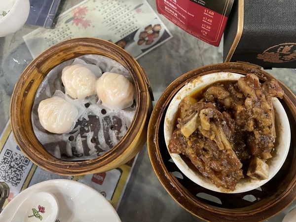 第一站我們去尖沙咀,先找港點,就選定蓮香樓。我們點了蝦餃、牛肉腸粉和滷牛骨,然後就是你一坐下來必點的茶,這樣191港幣,真的是貴鬆鬆,而且味道平平。