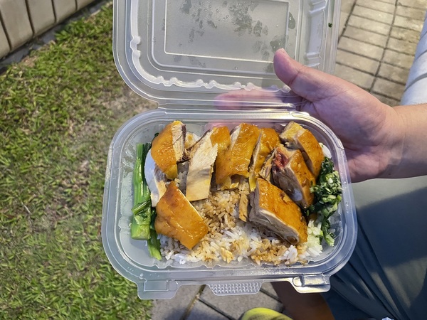18:40我們望向維多利亞港吃玫瑰油雞飯,唉,今天換的300歐元港幣,才一天的時間就快花光,還不包括飯店的費用,於是,晚餐就啃便當啦!。