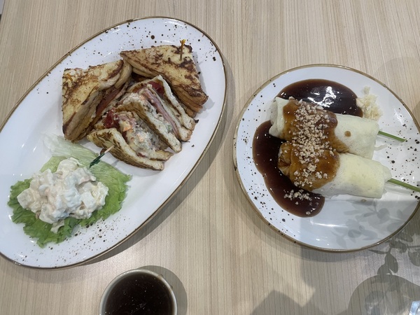 我們先在商場外的餐廳吃早餐,這家餐廳感覺是開整天的,因為它不但有賣早餐,就連午晚餐也有賣,最最厲害的是他們的咖啡,不誇張,真的比星巴克還要好喝,而且價格也比星巴克便宜。
