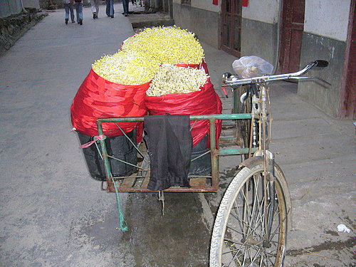 瞧,這奇怪的車子竟是計程車呢!這可不是一台改裝過的摩托車嗎?怎麼竟搖身一變成TAXI了呢?荔波縣城裡有很多這樣的車子,我想,一台車大約只能塞下一位客人吧?!