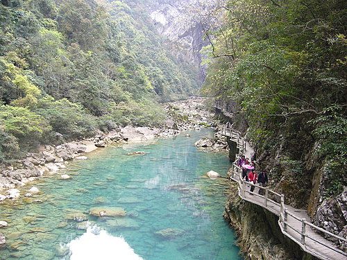 大小七孔景區是同緯度上,唯一的一片綠洲,因此有綠寶石之稱,它們都是因橋有七個孔而得名。導遊小黃自豪的說:「無論是九寨溝的水、桂林的山,都為之遜色許多。」我想,這倒未必,不過就是“再差,還是自己生的好嘍!”