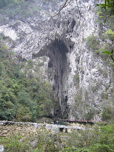 天生橋是大七孔景區裡最有看頭的一個景點,但必須步行1小時才可以到達。天生橋高約73米,厚約15米,寛約22米,是一個峽谷,擁有“東方凱旋門”的稱號,又叫做“恐怖峽谷”。我們只能站在距離它約莫500公尺的地方,遠遠地、靜靜地欣賞它特殊的美。