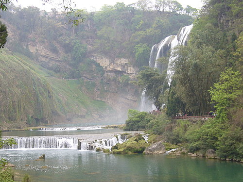 黃果樹大瀑布在以前被稱為白水河大瀑布,後來因為當地盛產黃果,且又有一棵樹齡超過600年的大果榕而得此名。這個瀑布目前還不斷地在成長中,2006年的時候,就已更新最新的資料,其寬為101公尺,高77.8公尺,水深17公尺,是一座不但可以遠觀,還可以貫穿其內部,並用手觸摸的瀑布。